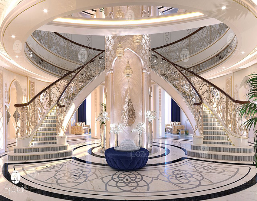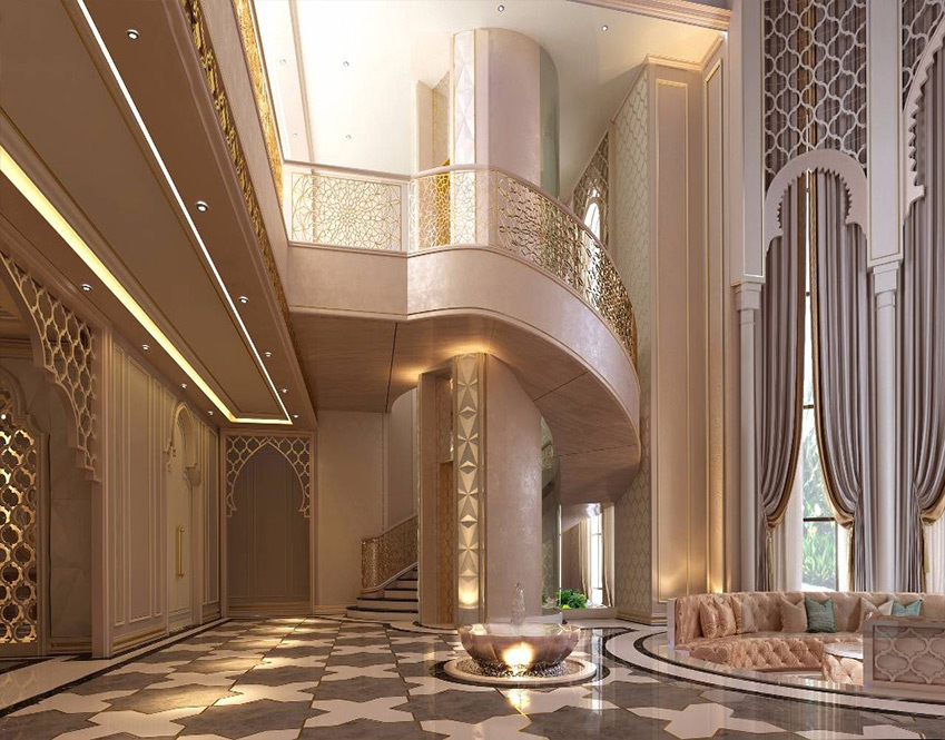 The decoration of the entrance to the villa should be distinctive and striking to highlight its beauty, Algedra offers you amazing and luxurious designs for the lobby of the villas and palaces.